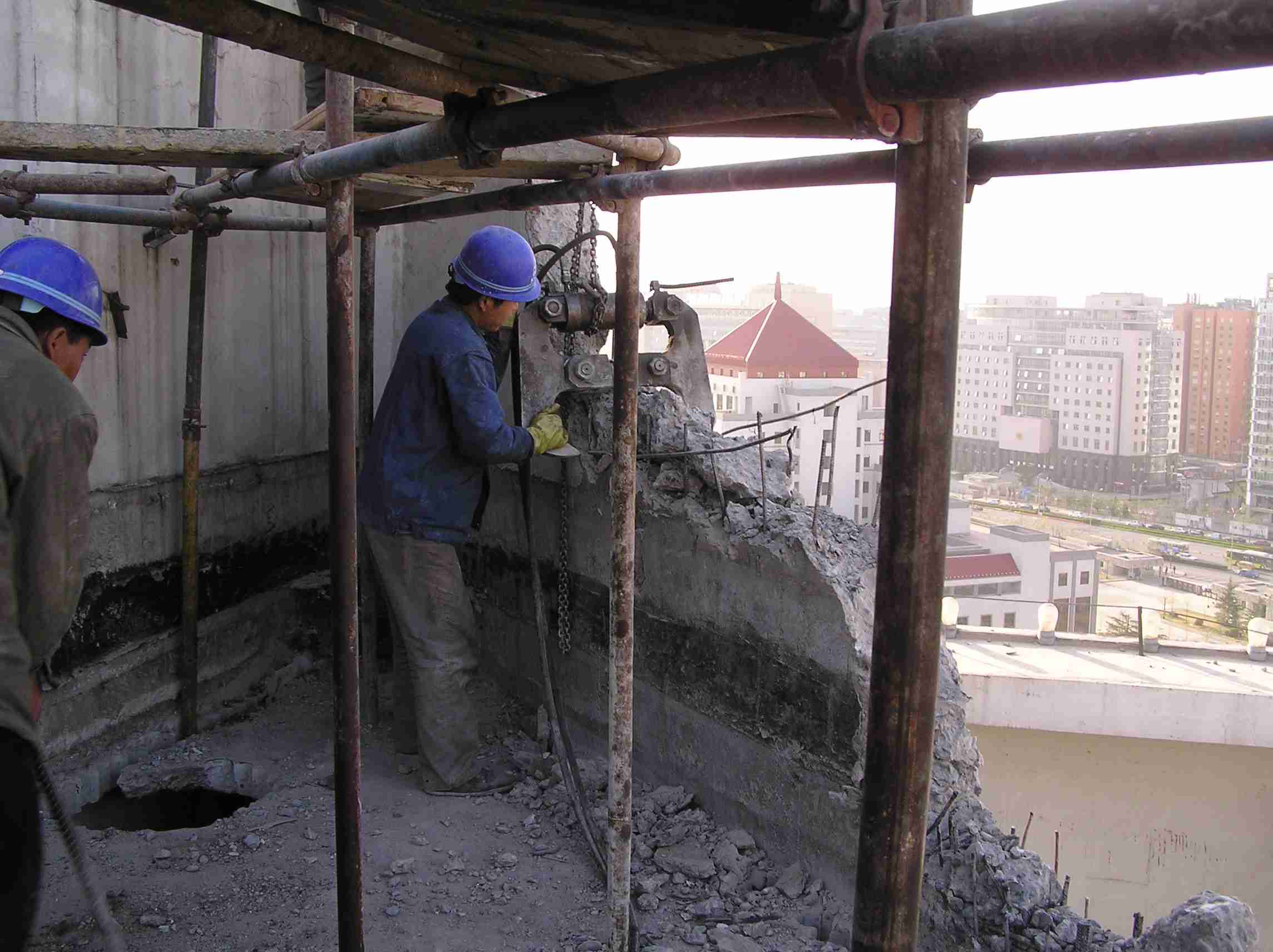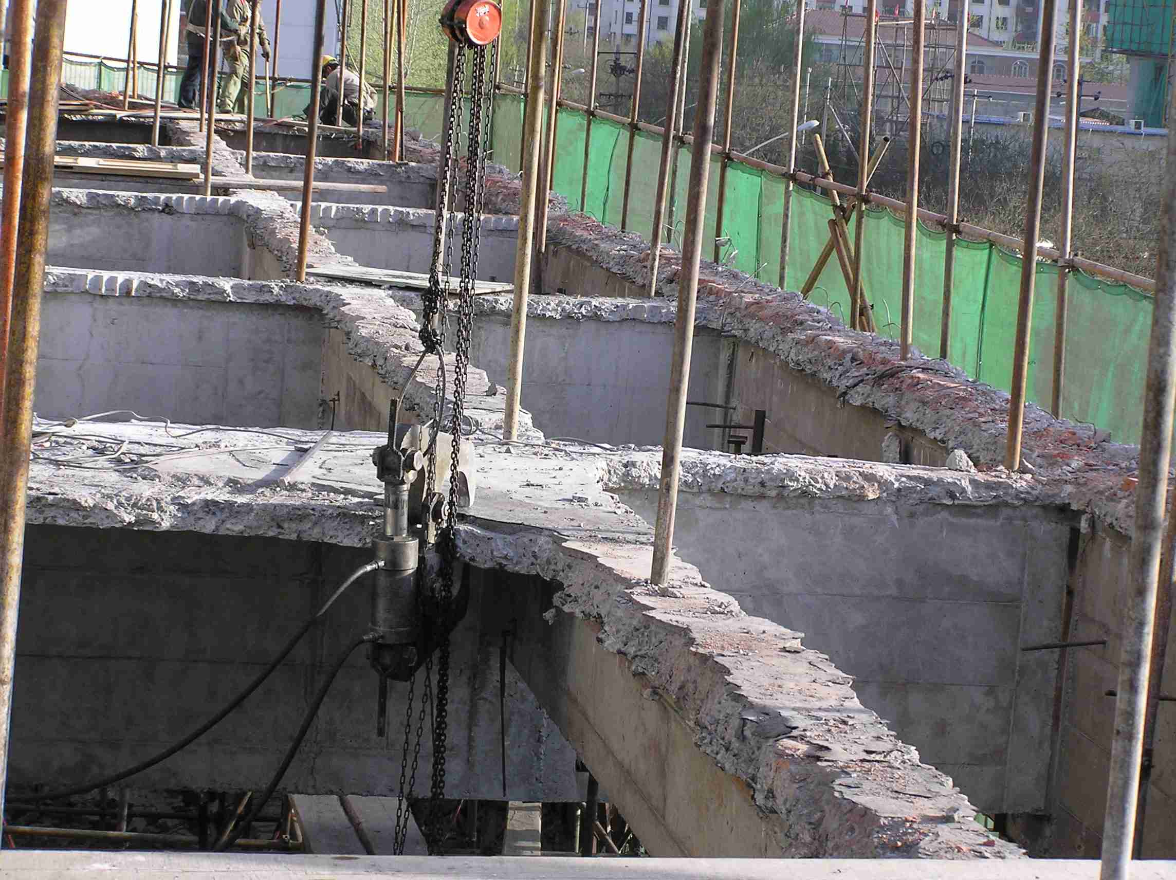 皇苑酒店改造工程主要采取了液压钳破碎方法,对需要拆除的楼板、剪力墙进行破碎拆除